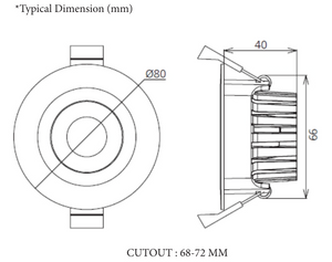 CA – JRFD-2.5-8W recess downlight c/w 8W LED lamp, die-cast aluminium housing coated with white powder paint, clear diffuser and dimmable LED driver.