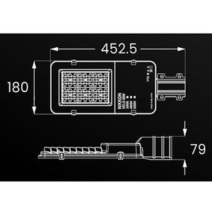CA – VELO-SL street light, die-cast aluminum grey housing, clear tempered glass diffuser, surge protector and integral LED driver. (Side Entry Mounting)