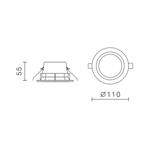 ''CA – Econ Round 1 recess round mounted downlight c/w 1 X LED-8W LED lamp, white trim and housing, frosted diffuser and LED driver.