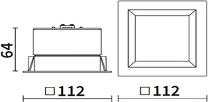 'CA – Econ Square 2 recess square mounted downlight c/w 1 X LED-13W LED lamp, white trim and housing, frosted diffuser and LED driver.
