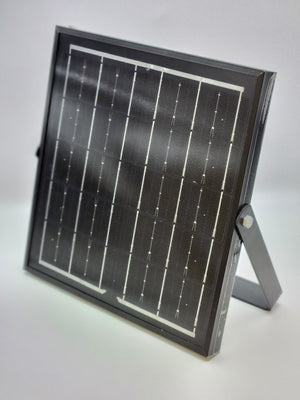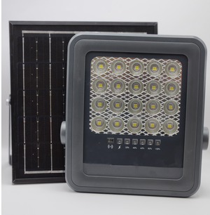 CA – JD6001-100W surface mounted floodlight c/w 100W daylight LED lamp(6500K), ABS black housing, monocrystalline solar panel(5V10W), clear glass diffuser, LifePO4 battery 3.2V 5000mAH.